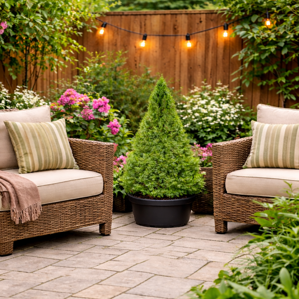 A popular garden staple with dense evergreen growth that won't overgrow tight spaces. Makes a formal statement in the garden with its desirable, cone-shaped, symmetrical form. A superb container specimen or accent in the landscape.